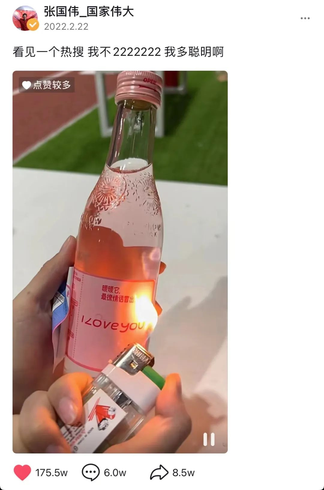 同時,漢口二廠話題爆款“戀愛CP”(戀愛soda+分手快樂水)也在“櫻花季”再度席捲社交平台,張國偉抖音視頻更是收穫175w+點贊,引發年輕羣體打卡購買熱潮。
