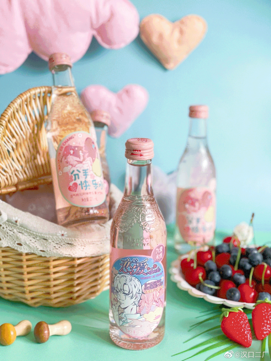 “表白瓶”戀愛soda、“變臉瓶”喵嗚soda、“給荔枝打氣”的勵志汽水、“萬物皆可Dong”的嘿凍系列······**國潮飲料廠牌漢口二廠憑藉產品顏值、互動玩法、國潮生活方式等頻繁刷屏出圈,引發消費熱潮。**既是年輕人的自拍神器,同時也是社交利器。
