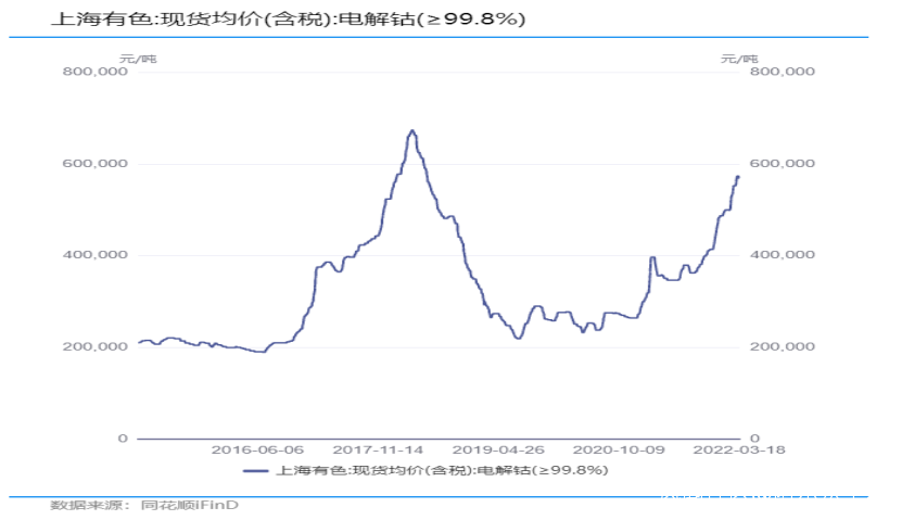 根據上海有色數據顯示,3月18日,碳酸鋰價格突破50萬/噸,上漲至50.3萬/噸,氫氧化鋰價格上升至48.95萬/噸。而二者的2021年初價格還不足10萬/噸,僅一年的時間漲幅接近4倍。