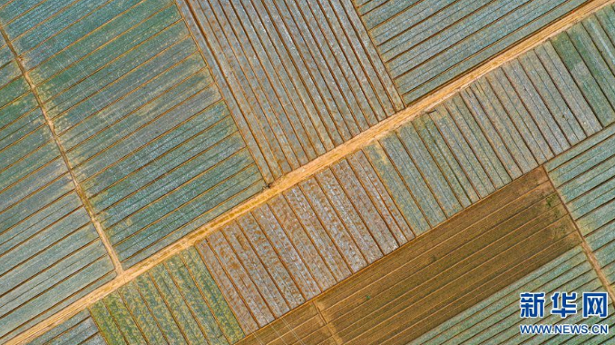 2020年10月29日,河南省開封市杞縣高陽鎮黃崗村,無人機拍攝的田園地膜。