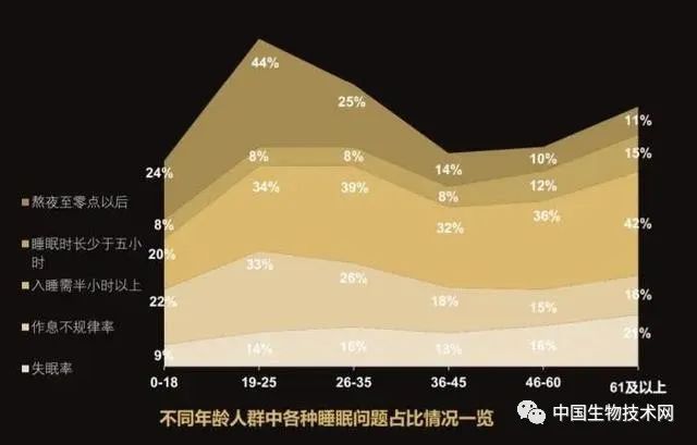白皮書調查顯示,44%的19-25歲年輕人熬夜至零點以後,42%的老年人入睡時長超過半小時,失眠率高達21%。