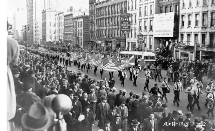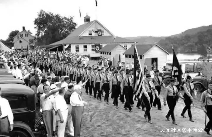 二戰前期,大量美國納粹團體盛行,甚至有民眾舉着萬字旗和希特勒頭像搞大規模遊行,青少年們穿納粹制服,行納粹禮。