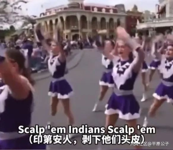 3月15日,美國奧蘭多迪士尼樂園的一場遊行表演上,來自美國得克薩斯州一所高中的啦啦隊員在表演中一邊跳舞,一邊高聲唱着“印第安人剝頭皮”。