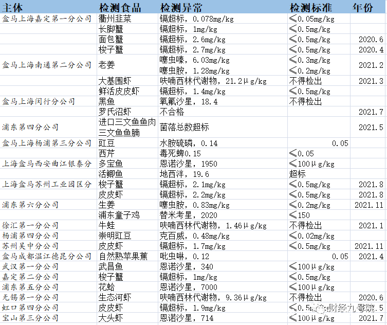 通過整理各地市場監管部門的食品安全違法處罰,以及各類蔬菜水產等產品的抽檢數據,發現盒馬在食品安全領域的風險是相當高的,甚至可以説令消費者非常失望的。
