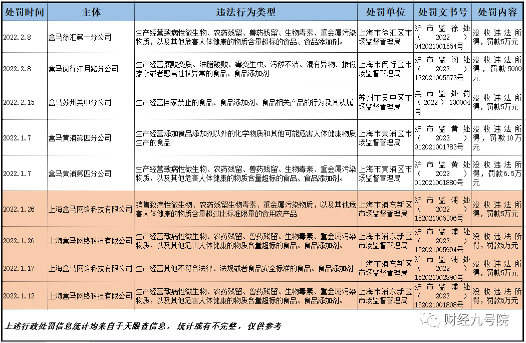 盒馬鮮生:食品安全屢屢失守,今年已收15張罰單,京滬成重災區_風聞