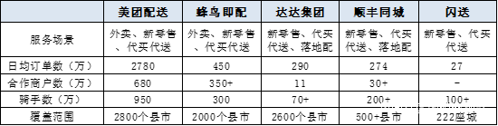 在本地零售與即時配送兩大領域,平台間的配合度,可以從用户、訂單量、履約效率、物流體系構建多維度進行分析。