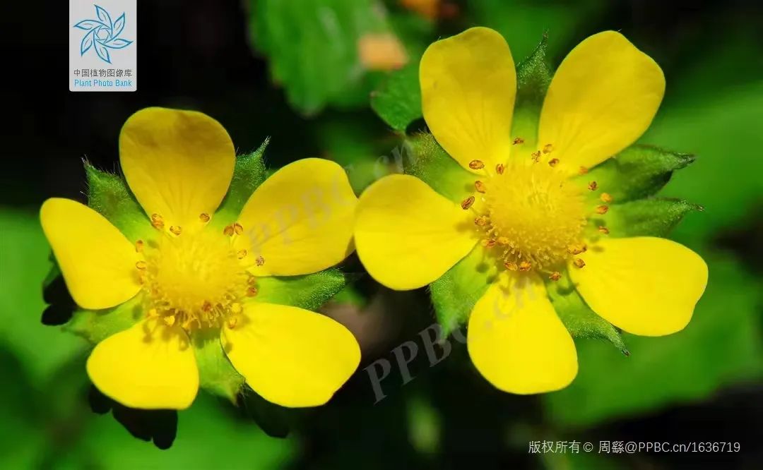 匍匐在地上的蛇莓,是薔薇科蛇莓屬的多年生草本植物。根莖粗短,以匍匐莖居多,長有柔毛;黃色的花朵有五枚花瓣,開花時,一大片一大片,遠遠看去,非常亮眼。
