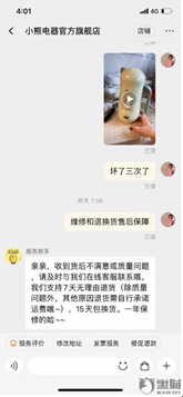 消費者在天貓渠道購買的小熊品牌豆漿機,不到一年壞了三次。