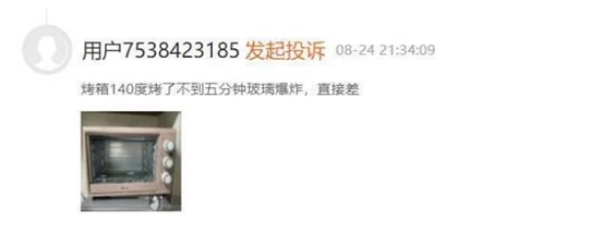 有消費者表示,使用小熊電器的烤箱不到5分鐘玻璃直接爆炸。