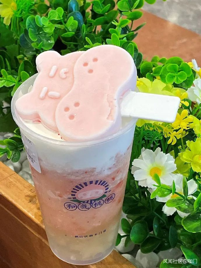 和氣桃桃有一款桃子風味產品,與盒馬聯名,在頂端使用了桃桃米酒味雪糕。