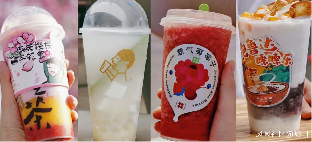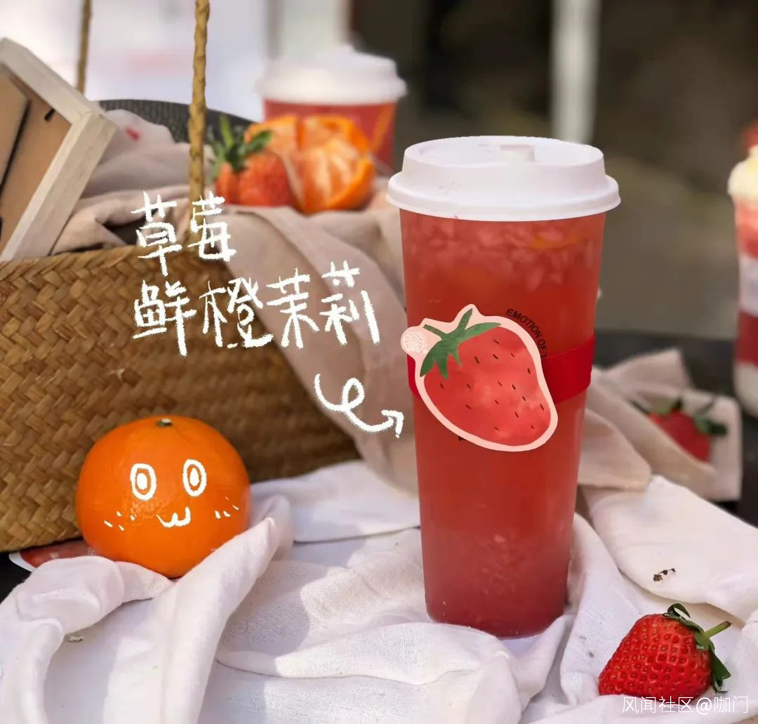 如眷茶的招牌草莓鮮橙茉莉,是將草莓和橙子結合;伏小桃的草莓長島冰茶,僅是草莓+烏龍茶+寒天晶球的組合,在社交平台備受好評。