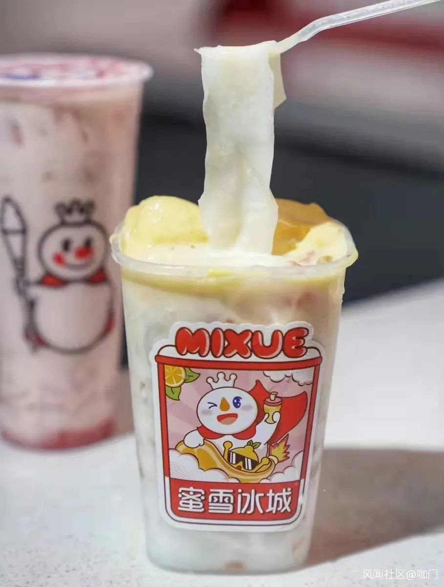蜜雪冰城去年10月推出的椰乳燴麪中,將椰粉做成燴麪的樣子,再添加芒果粒,不僅地域特色十足,椰乳+芒果也是不會出錯的搭配。