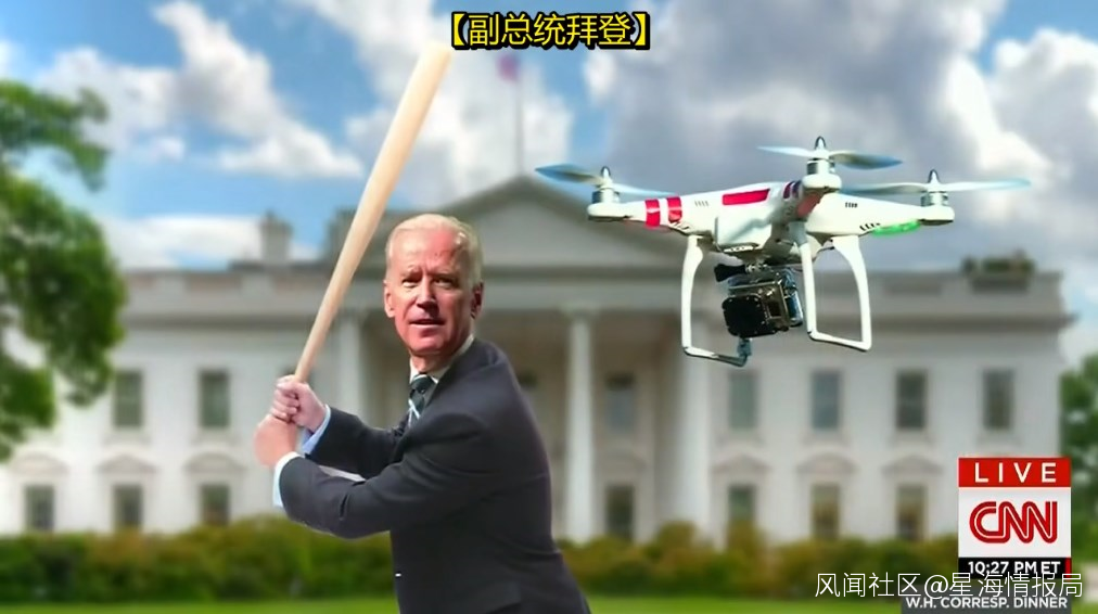 晚宴上的確笑聲一片,但無論是台上演講的奧巴馬,還是台下坐着的的特朗普,沒人真的把這件事當成一個笑話來處理。從某種程度上講,這張拜登在白宮門前對大疆揮舞棒球棍的圖片,並不是一個笑話,而是一種表態,甚至是一種預言。