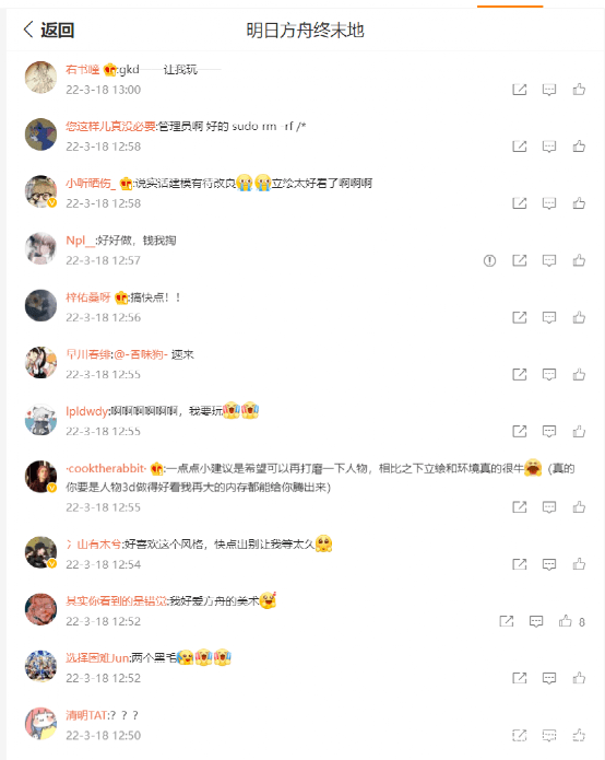 微博上,遊戲官方賬號的評論區也非常火爆,可以看出玩家們對這部新遊戲的巨大期待。