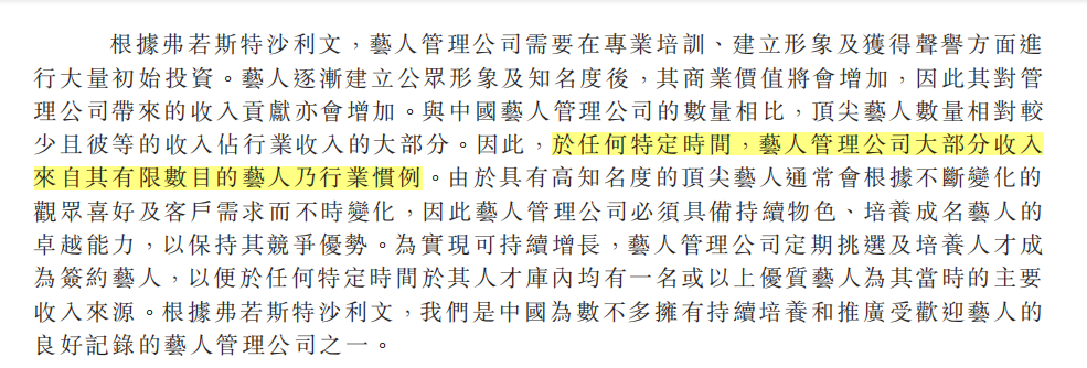 有媒體就“供應商B是否為王一博”的問題向樂華相關人士求證,得到的答案是“不太清楚”。如果猜測屬實,王一博對樂華的重要性可見一斑,“王一博概念股”的調侃並非空穴來風。其在招股書中也承認了業績依賴知名藝人的問題,“於任何特定時間,藝人管理公司大部分收入來自其有限數目的藝人乃行業慣例。”