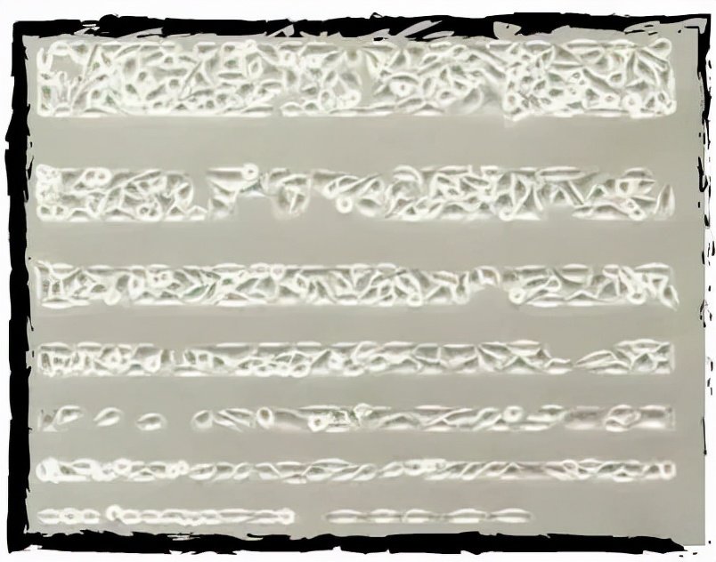 時鐘撥回到2009年的一天。科學家萬羣(Leo Wan)正在用顯微鏡觀察他培養的小鼠細胞。看着看着,他發現這些小鼠細胞不太對勁兒,像是長“擰勁兒”了。這批細胞的名字是成肌肉細胞(myoblast),顧名思義可以生成肌肉,是肌肉細胞的前身。他所培養的數百個成肌肉細胞長在了一個微型芯片上。向芯片上接種細胞時,萬羣使用的是一種微觀圖案技術(micropatterning):經由此技術處理的細胞,會附着在培養表面上,並依照研究者事先設計的某種高度規則的模式或圖案生長。(譯註:此技術可用於探究細胞的形態控制和遷移行為等重要生理過程。)