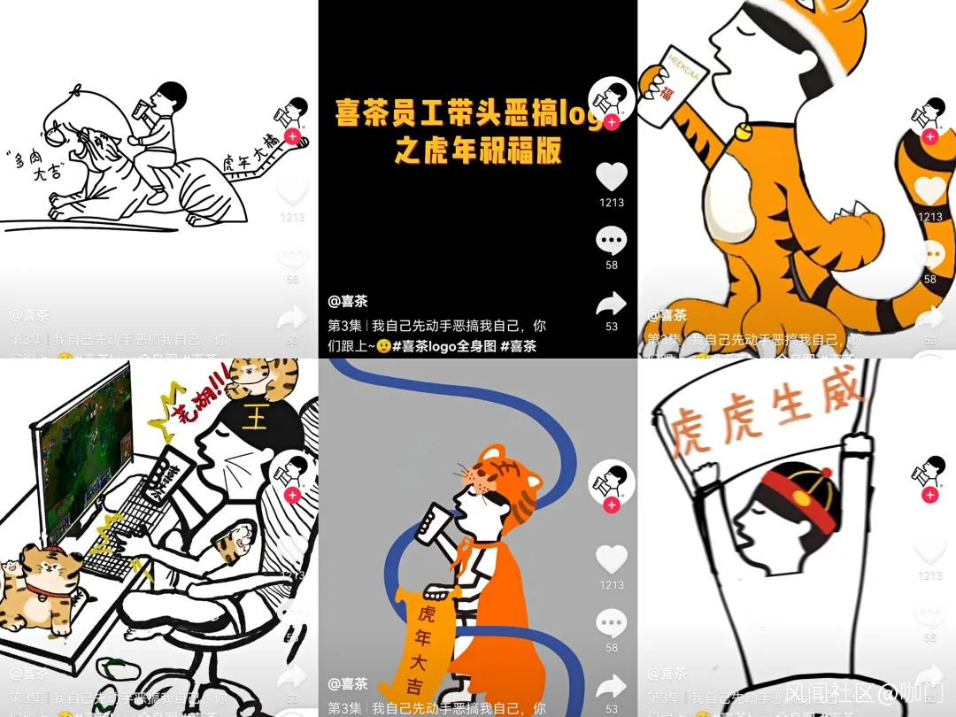除此之外,還有蜜雪冰城的ASMR沉浸式做奶茶、雪王內卷、DJ搓碟,喜茶的周邊開箱、喜茶劉昊然等等。