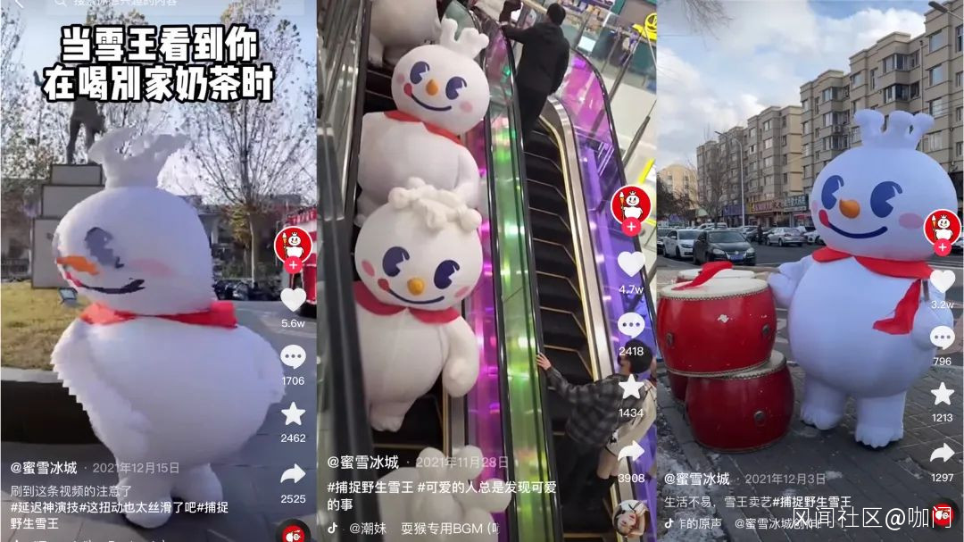 前段時間,他們還推火了“冰淇淋rap大賽”、“生活不易雪王賣藝”、“全國堆雪王大賽”等等,雪王也成了一個名副其實的抖音網紅,雪王排隊下樓梯都有幾萬人在抖音上圍觀。