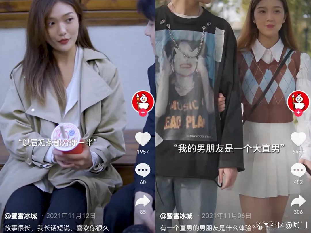 蜜雪冰城“和TA的故事”合集,僅更新2集,就有42.7W播放量,以情侶日常為主題,結合“男朋友是直男”、“你不説我怎麼知道你要什麼”這類網絡討論度頗高的話題,引發了一波關注。