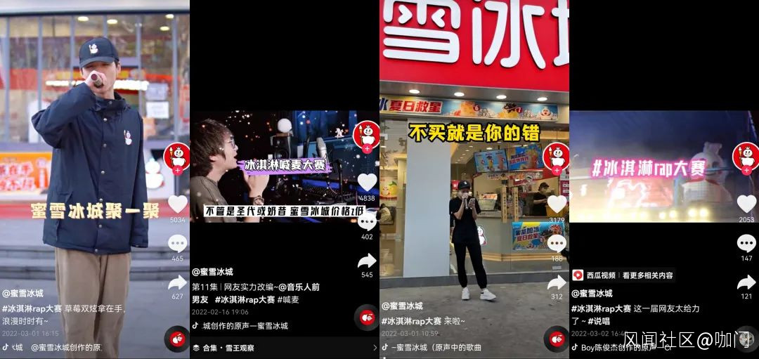 前有16國語言的“我愛你你愛我,蜜雪冰城甜蜜蜜”,現有“冰淇淋rap大賽”、“全國堆雪王比賽”。