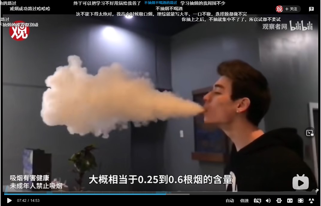- 這是作者自己的視頻截圖,7分40秒,一個煙彈一般2毫升,自己請看,請計算。我純引用。