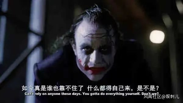 電影中正面角色與反派的對抗與衝突,也是兩者之間價值觀的拉扯。小丑“無底線的罪惡”與蝙蝠俠“有底線的正義”反覆摩擦,甚至讓觀眾心生“邪可壓正”的念想,但這也讓蝙蝠俠作為“陰暗中的光”變得更加偉大而不可替代。