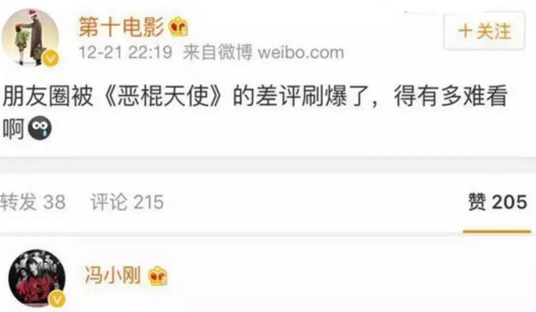 2015年底,鄧超的《惡棍天使》上畫時,馮小剛點讚了一條踩電影難看的微博。