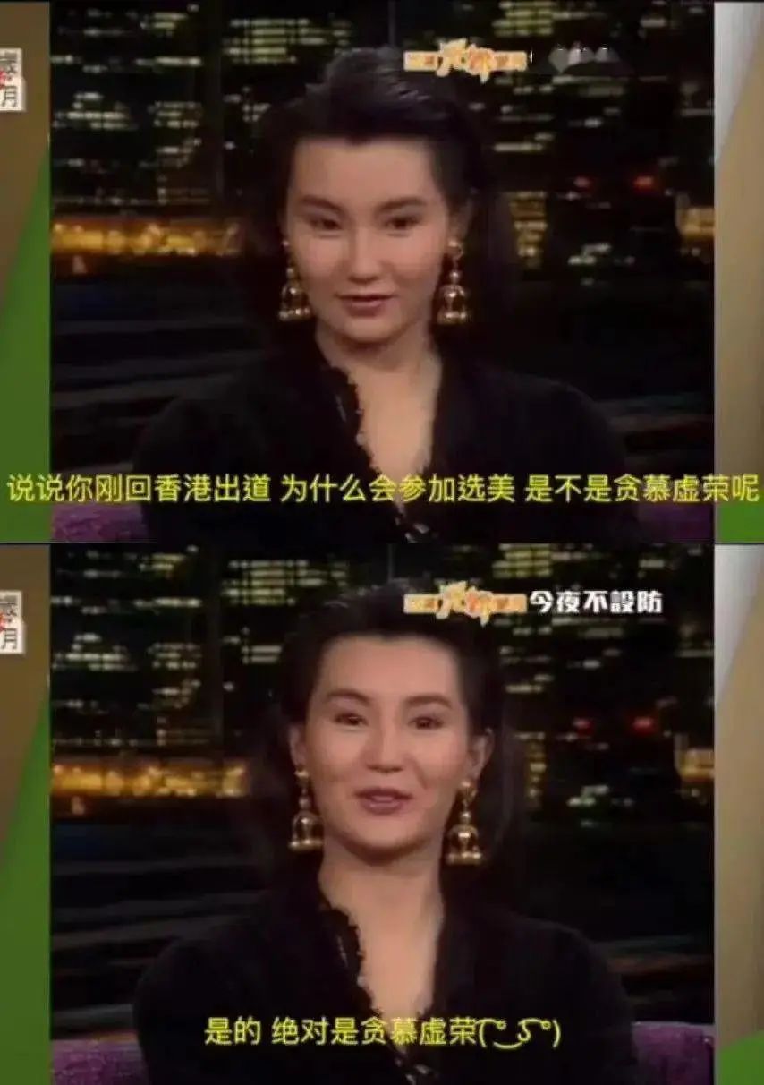 張曼玉也是直言,自己參加選美,絕對是“貪慕虛榮”。“這是事實,不怕説出來,也不是什麼醜事。”