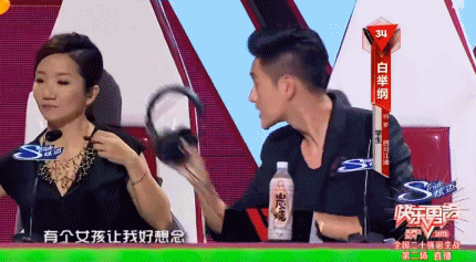 2013年的《快樂男聲》錄製現場,陳坤突然把耳機扔向同為評委的謝霆鋒。坐在中間桃子,被嚇了一跳,眼睛瞪得賊大。