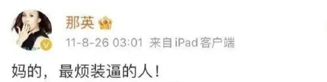 其中最著名的一條,就是那英2011年發的——“媽的,最煩裝X的人。”