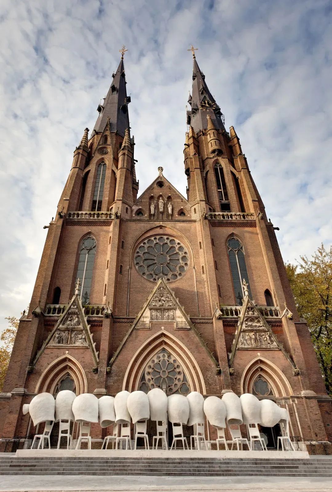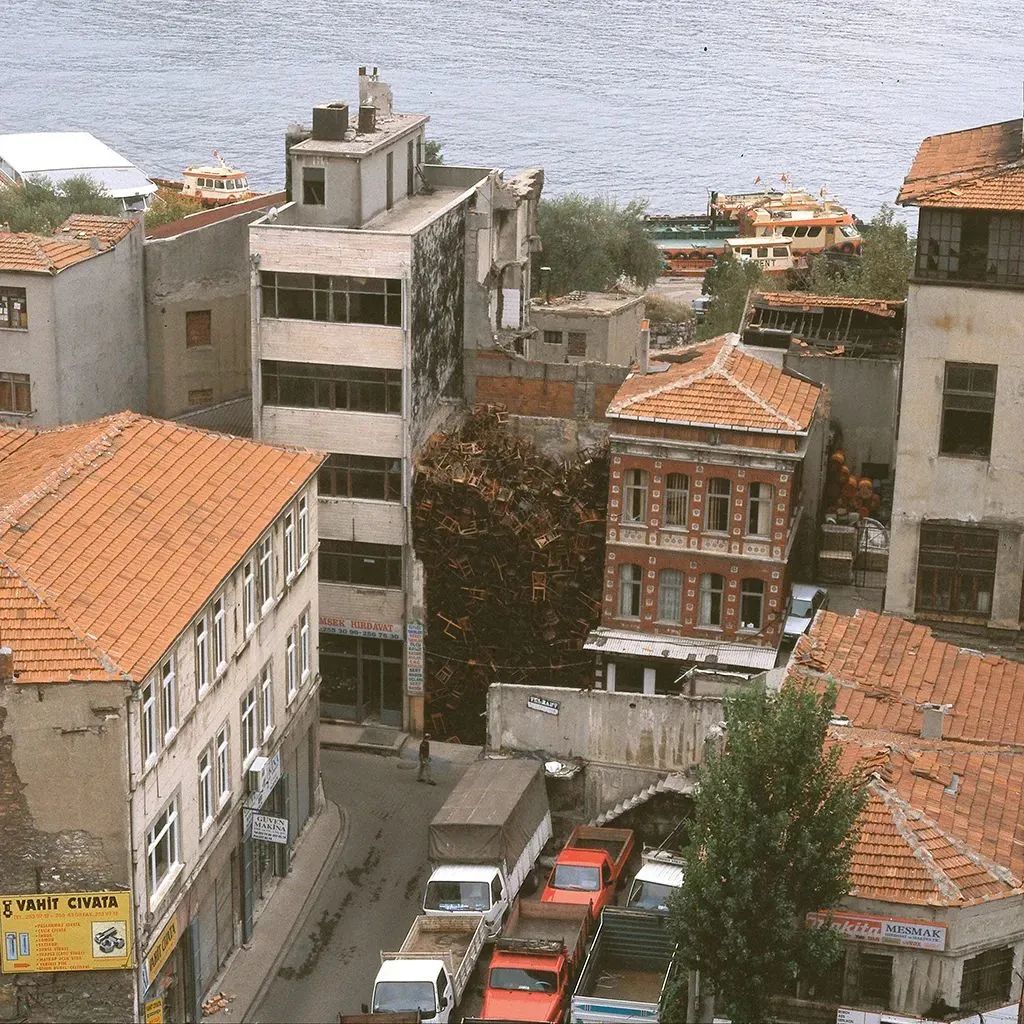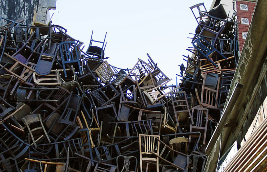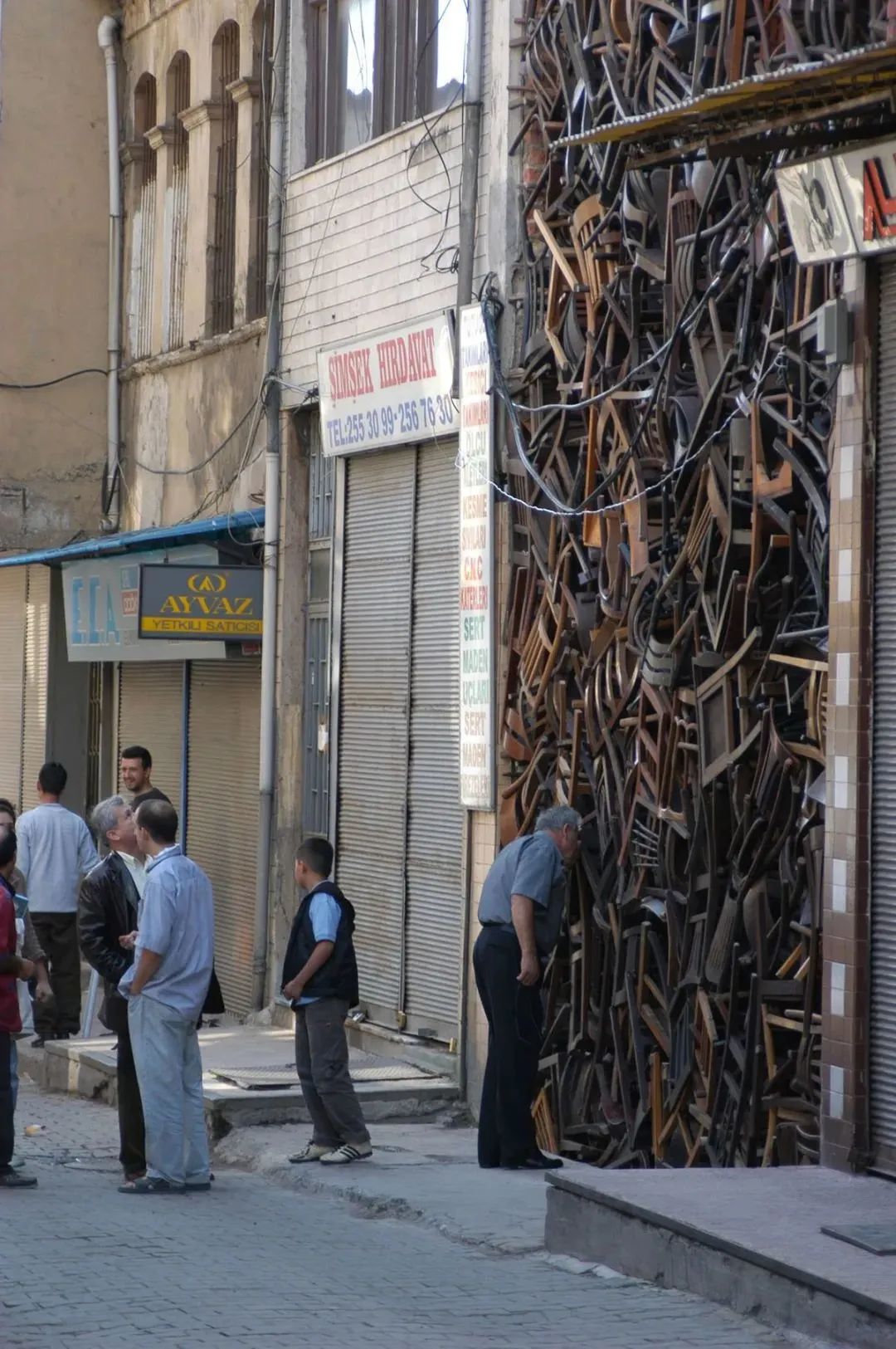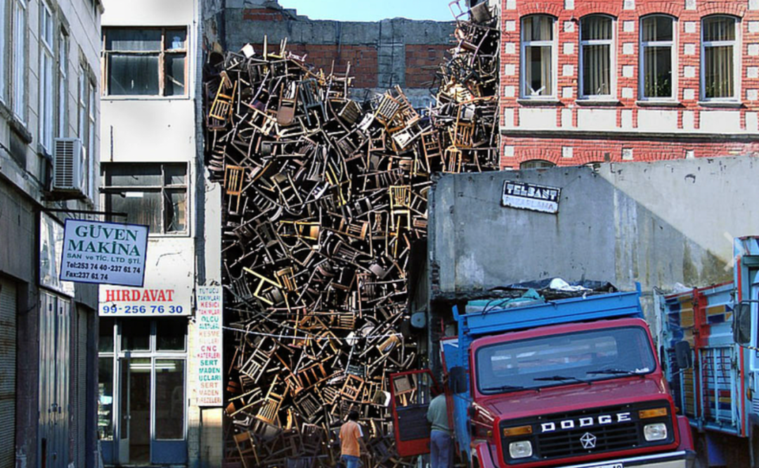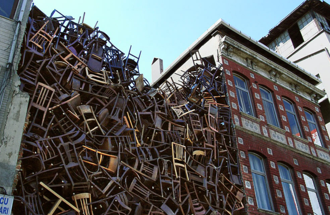 在伊斯坦布爾的兩棟建築之間,將1550把舊椅子堆積成一個大型建築裝置。