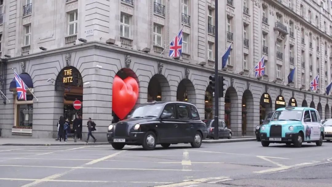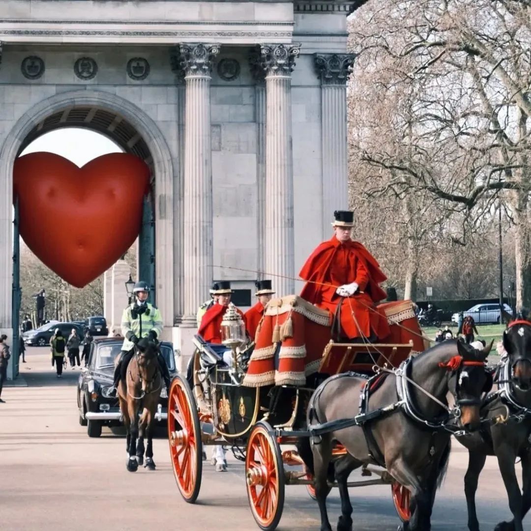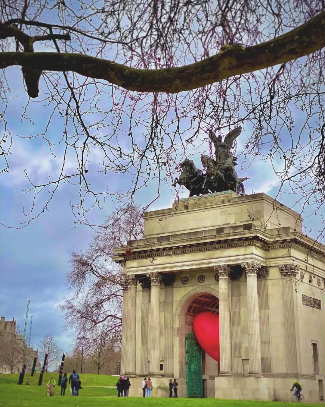 今年的2月14日,倫敦海德公園的威靈頓拱門出現了一顆胖乎乎的紅色愛心氣球。