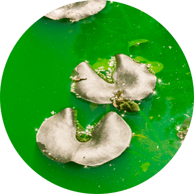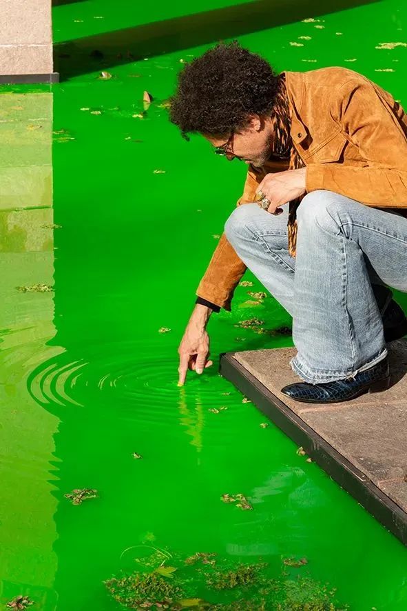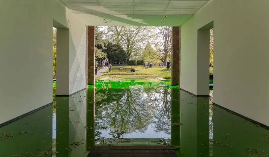 以生命為名的裝置展覽,埃利亞松在瑞士貝耶勒美術館(Fondation Beyeler)內開闢了一個綠色的池塘。