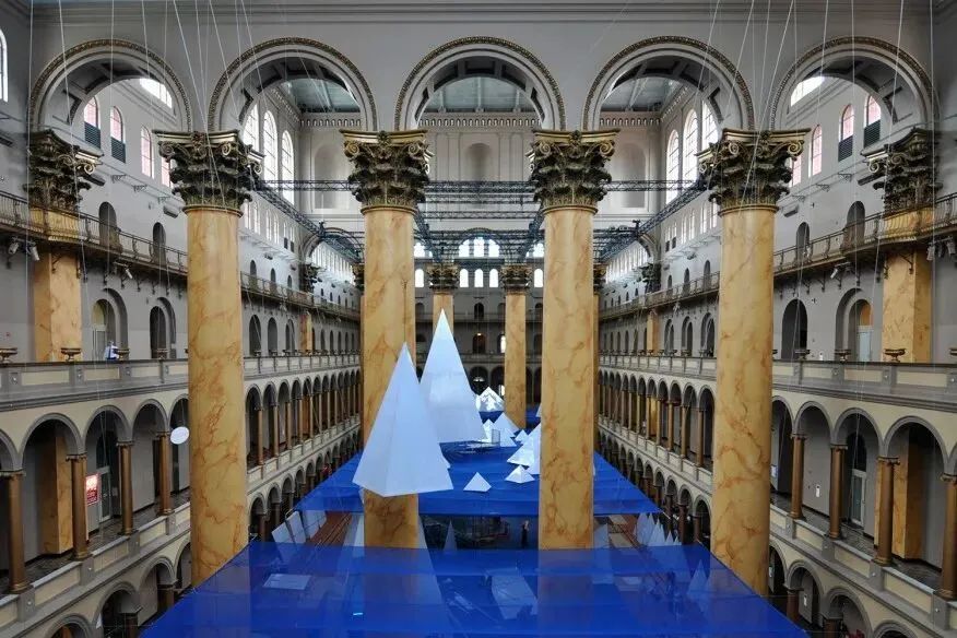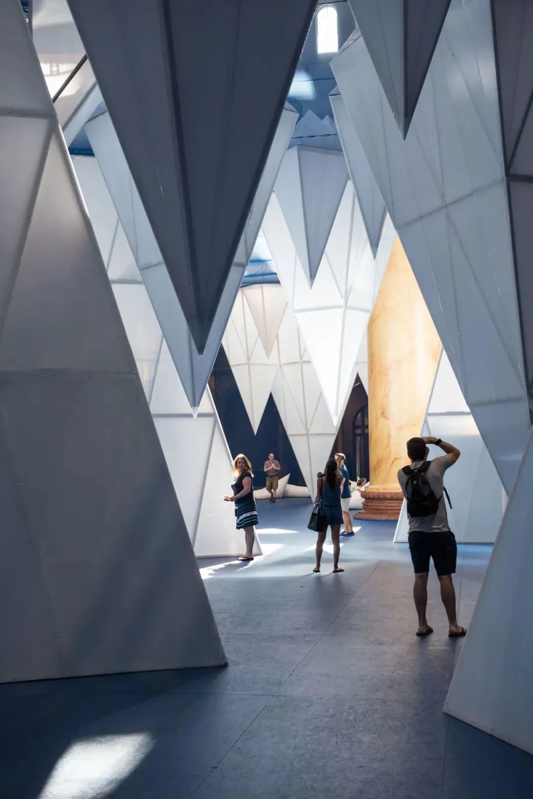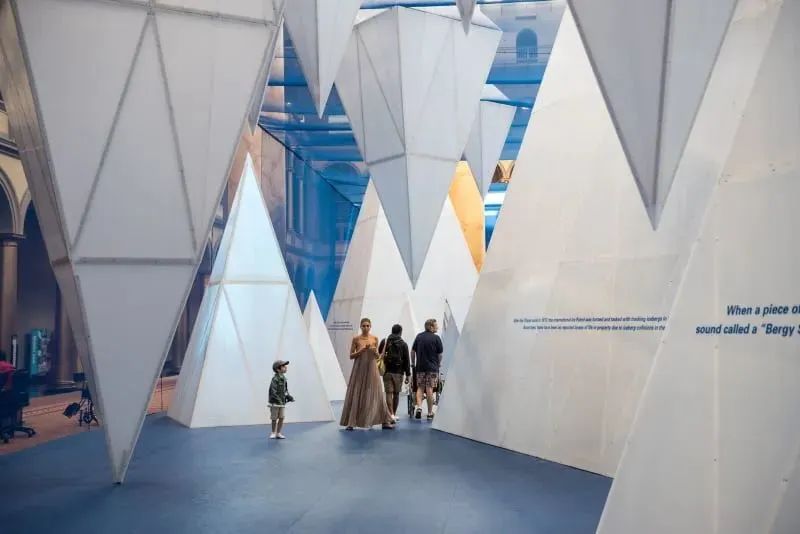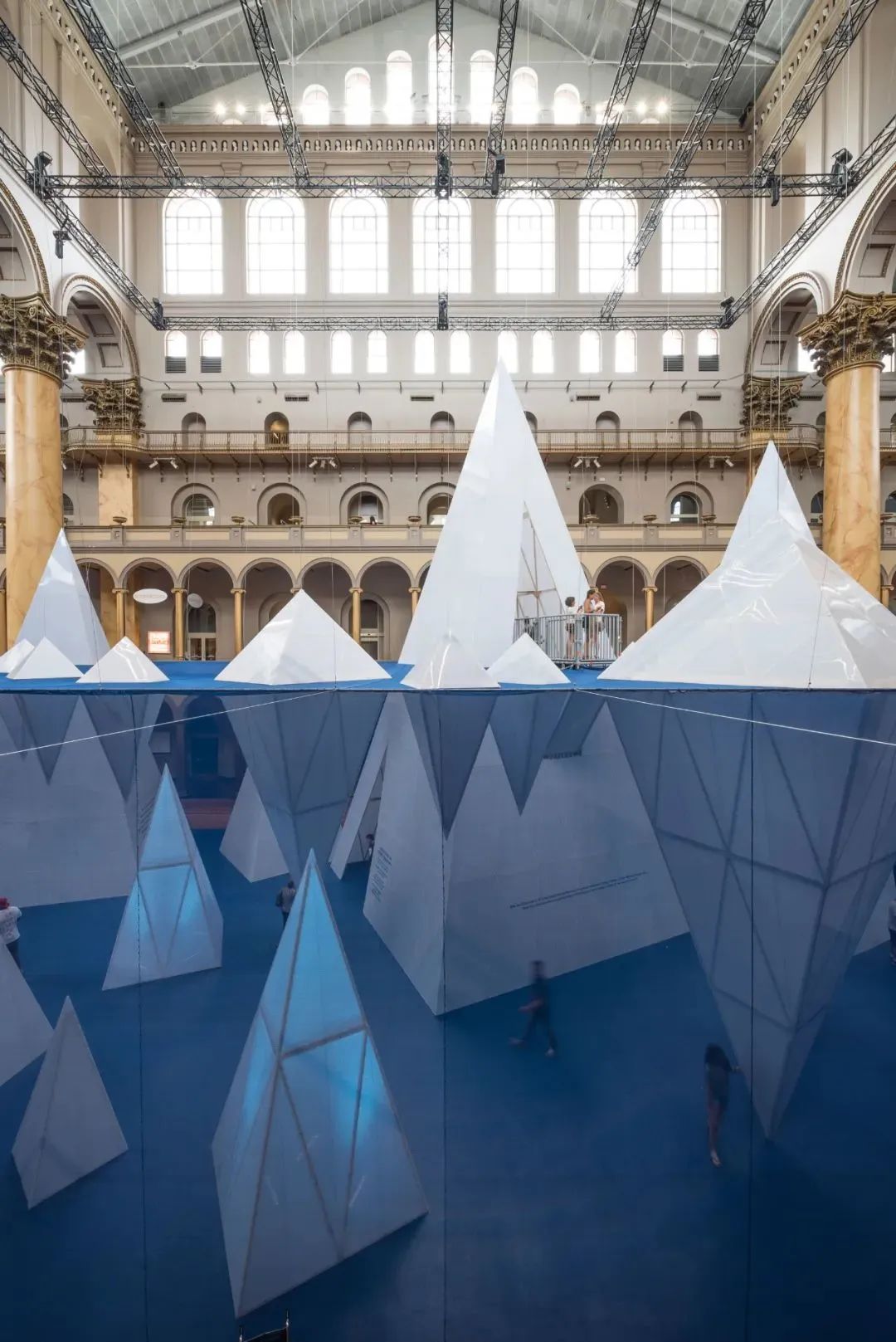 由美國建築工作室 James Corner Field Operations 打造的冰山裝置,彷佛是一個橫跨博物館大廳的冰原世界。