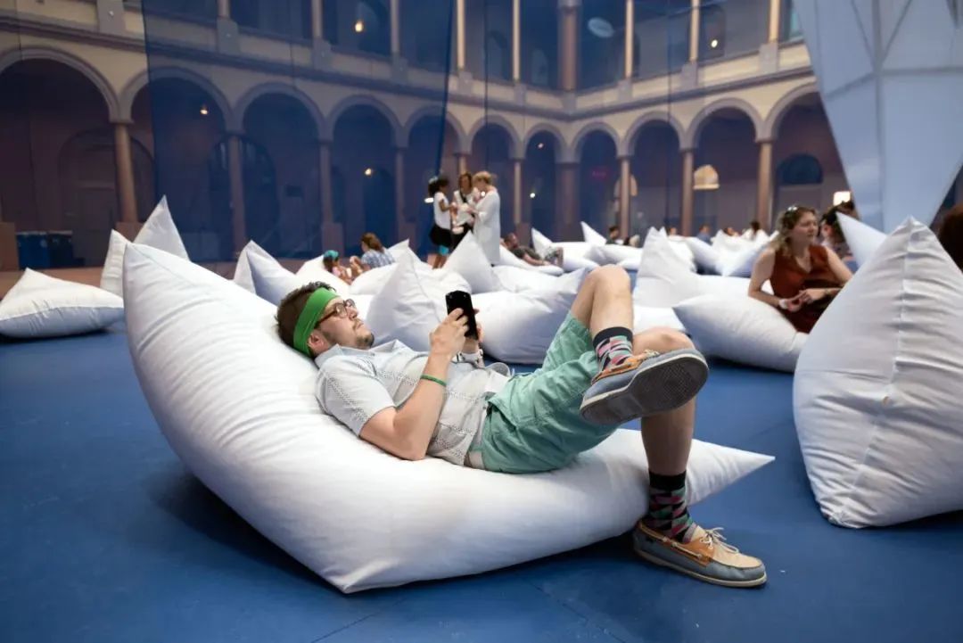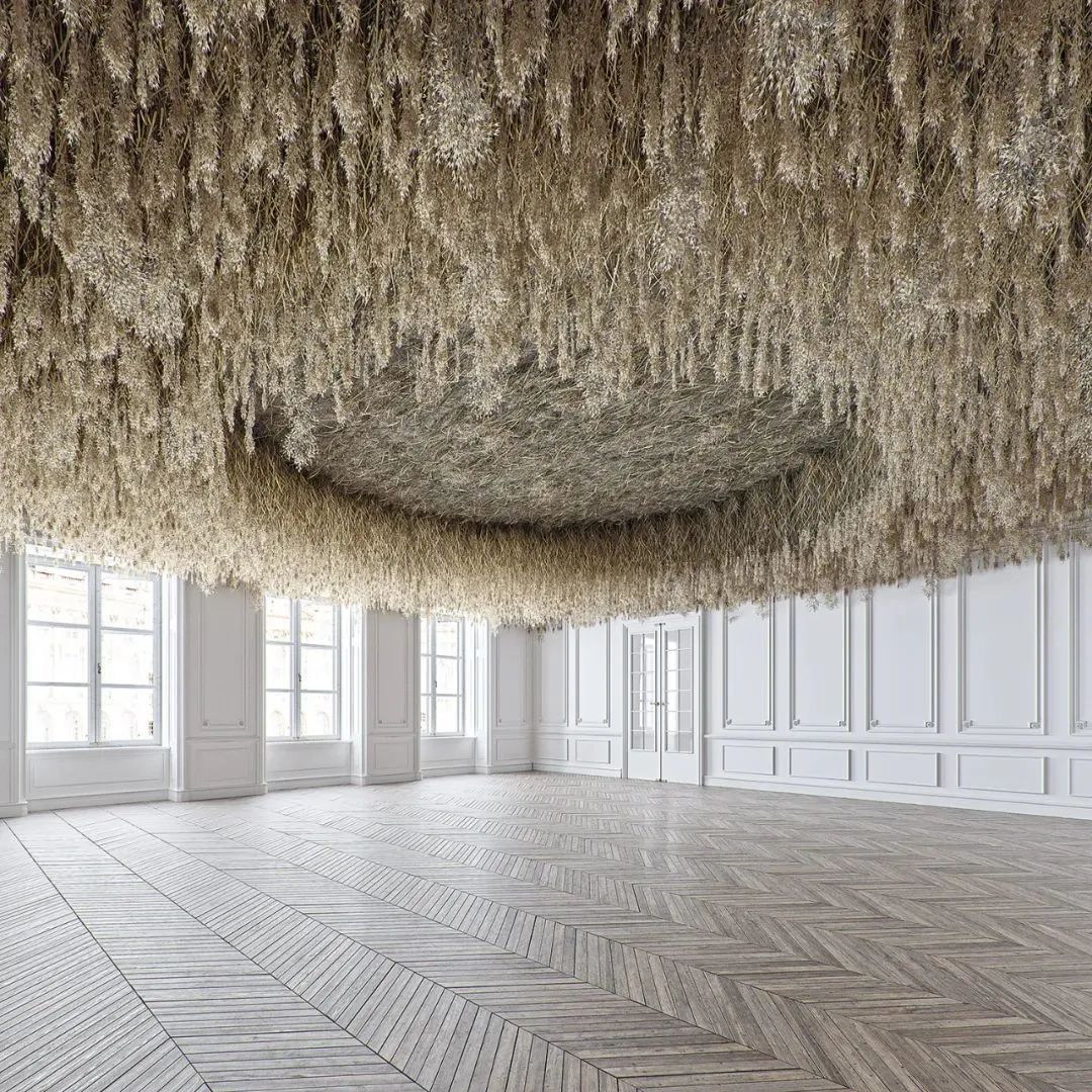 藝術家 Tadao Cern 用乾草鋪就出一片雲朵,“浮”於各大美術館的屋頂,邀請觀眾躺在諾大的地面上,獲得一段短暫的沉浸體驗。