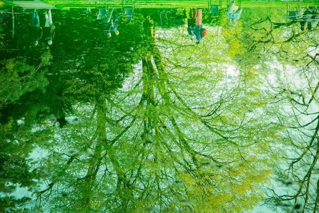 池塘之上,可見由景觀設計師岡瑟·沃格特(Günther Vogt)為展覽挑選的水生植物。