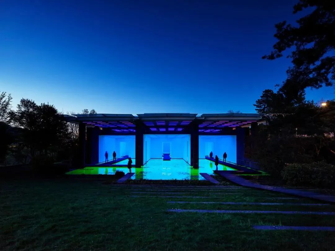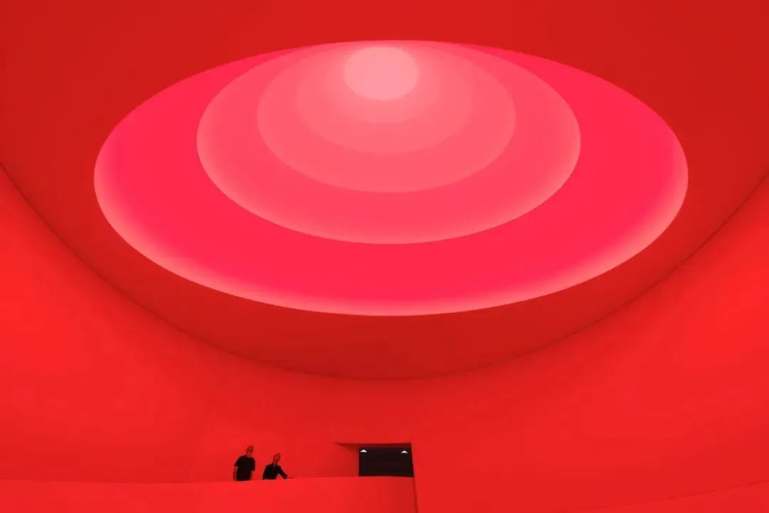 當代高產藝術家 James Turrell 將光引入自己的作品,結合建築空間、投影、LED燈管、天空為素材進行色彩創作。