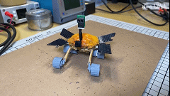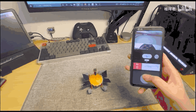 這隻螃蟹月球車,乍一看就像個玩具,但功能上卻非常強悍,能通過激光測距實現目標跟蹤;有重力感知裝置,所有移動、翻身,都能同步傳輸到電腦上,跟它的電子畫面同步。