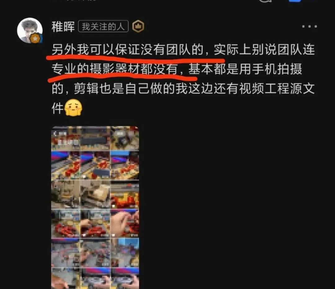 為了這份熱愛,不管是多複雜的項目,稚暉君都是一個人完成,他曾在網上公開聲明:沒有團隊,就連拍視頻,也連專業的攝影器材都沒有,基本都是用手機,剪輯也是自己做。