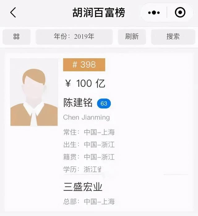 更為諷刺的是,當三盛宏業深陷債務危機時,陳建銘的財富值達到了頂峯,他以100億身價,兩度躋身胡潤百富榜。