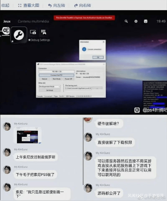 再來是更大膽的消息:“有俄羅斯黑客小哥宣佈稱自己已經成功破解了PS5的開發機以及4.51版本系統。”