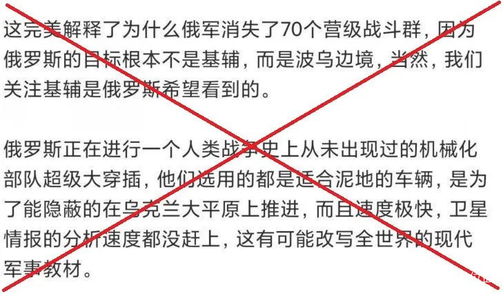 在這樣的背景下,無數的謠言與猜測滿天飛,有人聲稱俄軍其實已經攻入基輔市區,甚至已經佔領第聶伯河西岸。甚至還有陰謀論的説法,認為基輔已經被俄軍攻佔了,基輔甚至利沃夫的所謂烏軍全都是俄軍假扮的。如今看來,這些消息自然假的不能再假,但俄軍突入烏克蘭的幾十個營級戰鬥羣究竟去哪了?這個問題似乎一直無法得到解釋。