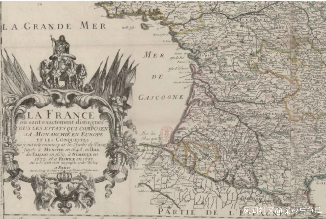 圖4 1701 年《法蘭西地圖》的題銘與比利牛斯山部分