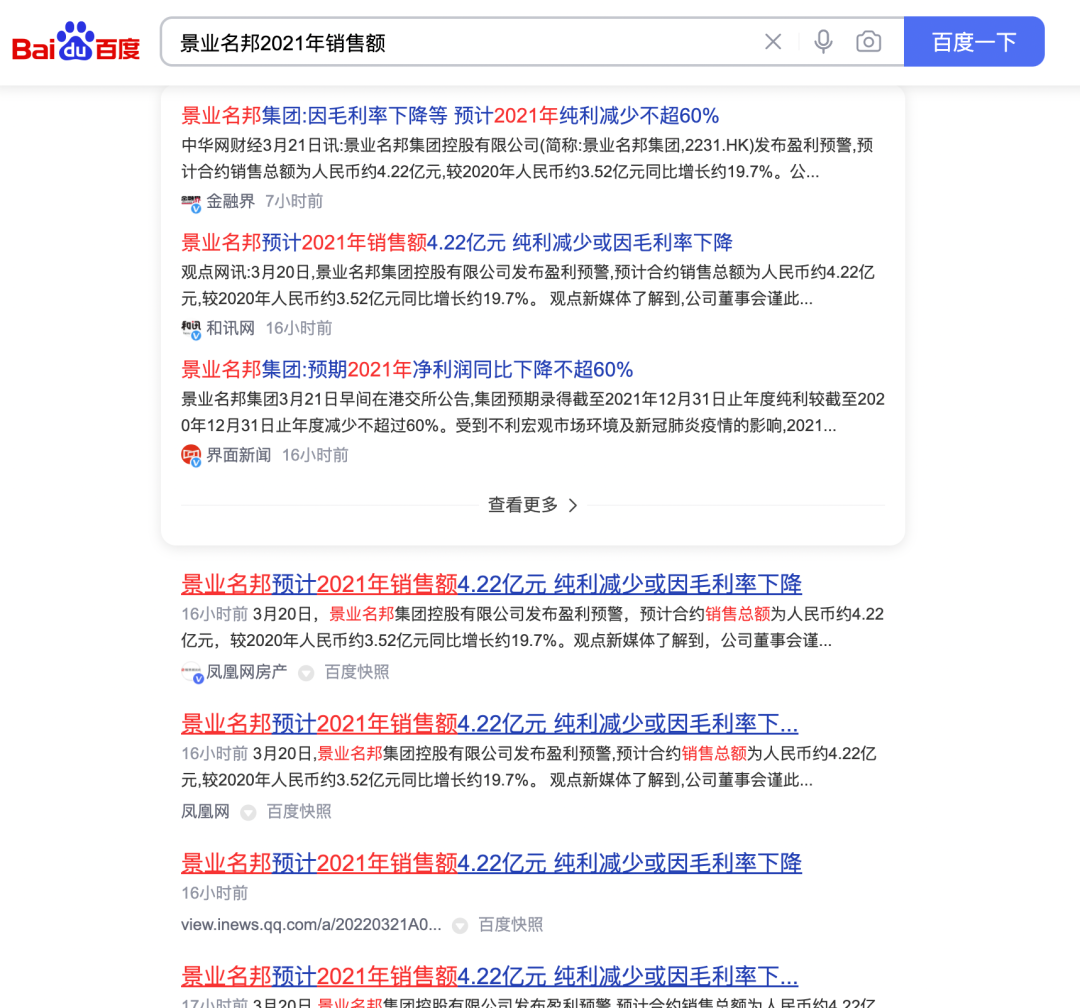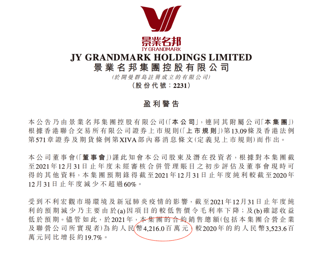景業名邦在公告中稱,2021年度純利的預期減少乃主要由於:項目的較低售價令毛利率下降及確認收益低於預期。