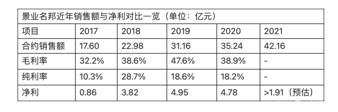 不要將淨利潤大幅下滑歸咎於2021年下半年市場下滑所致,因為2021年的銷售業績並不在2021年的財報中體現,2021年淨利潤的下滑更多體現出2020年乃至2019年的銷售業績,但是從上表中不難看出,2020年和2019年景業名邦的銷售業績並不差,所以我們很難為其2021年淨利潤大幅下滑(至多60%)找到一個合適的理由。