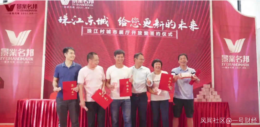 但是無論是在2020年9月珠江村城市展廳開放暨簽約儀式剪影,還是在2020年12月12日,珠江村舊村改造“衝八”簽約誓師大會上,都能看到景業名邦的品牌元素與高管身影。