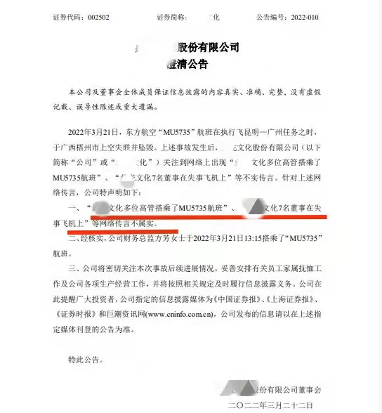 **然而,在這令人揪心的特殊時刻,一些別有用心之人卻藉着輿論對墜機事故的關注度,動起了歪腦筋。**他們或藉機營銷,如以此事件為背景製作宣傳海報,美其名曰“願MU5735航班的親人平安回家”,但實質為自家樓盤打廣告的某房地產公司;他們或發佈虛假信息以博眼球,如惡意傳播“某文化股份有限公司7名董事在失事飛機上”等不實言論;他們或仿冒倖存者蹭流量,飛機失事後,短短數小時內,網上竟出現幾十個自稱是沒登上MU5735航班的“幸運兒”;此外網上還流傳着沒有經官方渠道證實的各種信息,如臆測墜機原因等,並藉機關聯炒作。