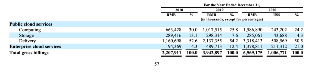 在年報中的數據口徑,實際上是交付(Delivery)業務在公有云和企業雲兩塊業務中的佔比。
