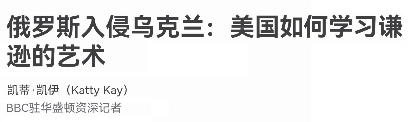 3月21日,BBC中文網刊登了其駐華盛頓記者凱蒂·凱伊的文章,標題是《俄羅斯入侵烏克蘭:美國如何學習謙遜的藝術》。