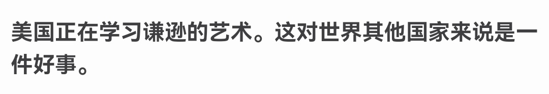 國與國之間平等對話,是再正常不過的事情,現如今美國放低姿態,不再把“我施捨你”的一面展現得和過去一樣露骨,居然就可以説是謙遜了?